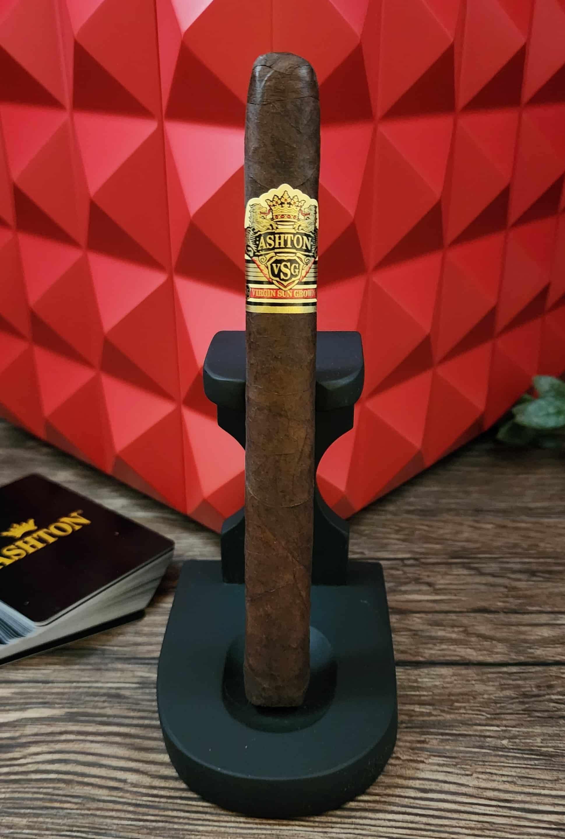 The prized Sumatra-seed wrapper on Ashton VSG hails from a private estate in Ecuador where the region’s delicate cloud cover naturally filters sunlight. From there, it is fermented extensively in the hands of the Fuente family until it achieves its dark and lustrous sheen. The wrapper conceals a profound marriage of four-to-five-year-aged Dominican binder and filler tobaccos. Since its debut in 1999, the 94-rated Ashton VSG has governed the summit for full-bodied flavor and richness.
