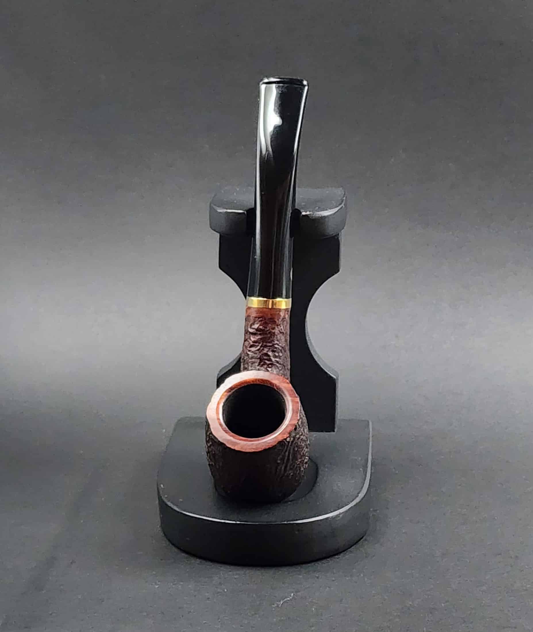 Sandblasted one-by-one these high quality Briar pipes have an acrylic stem, gold coloured band and are finished with a special staining process. Each pipe is unique with shade variations.