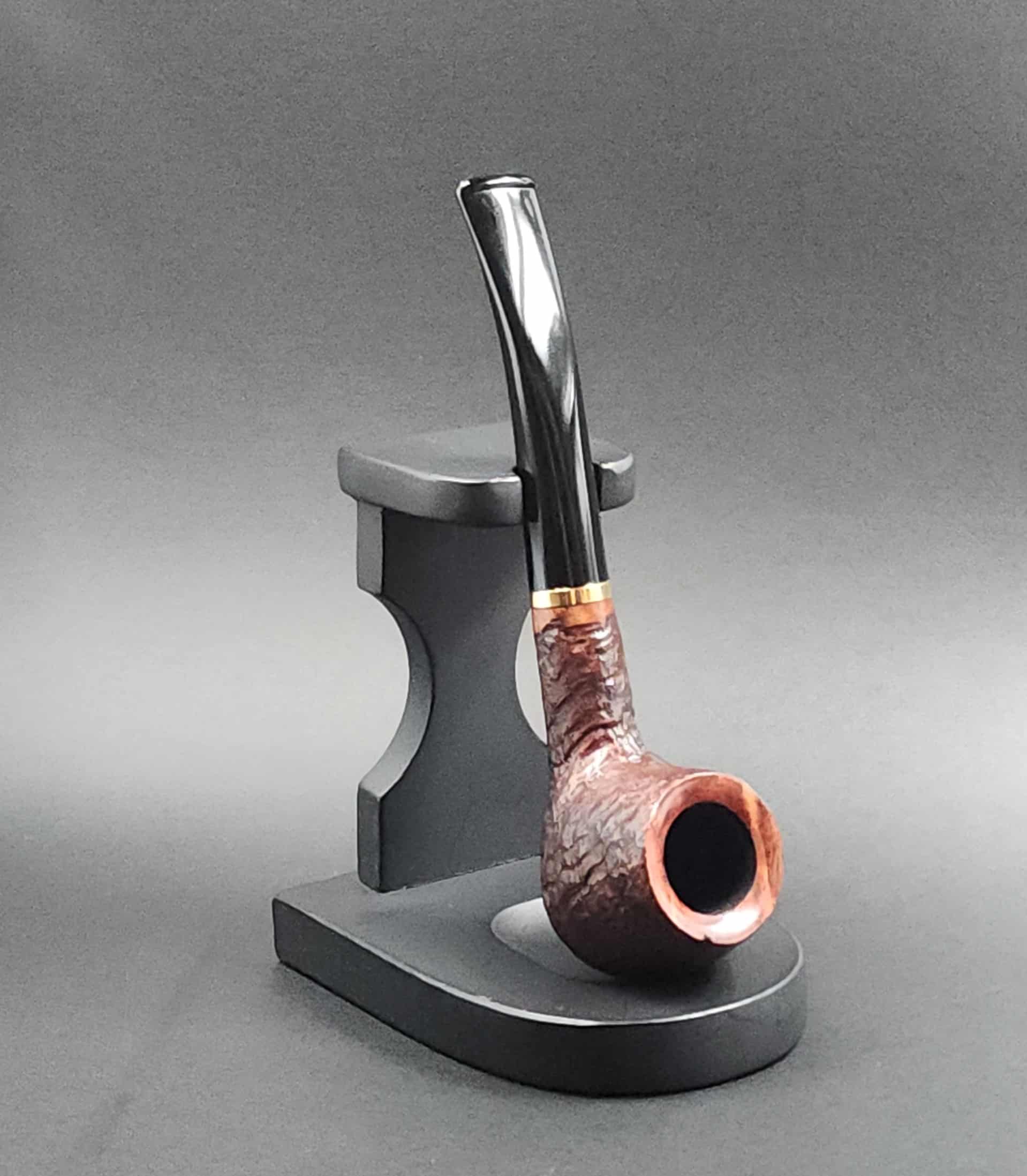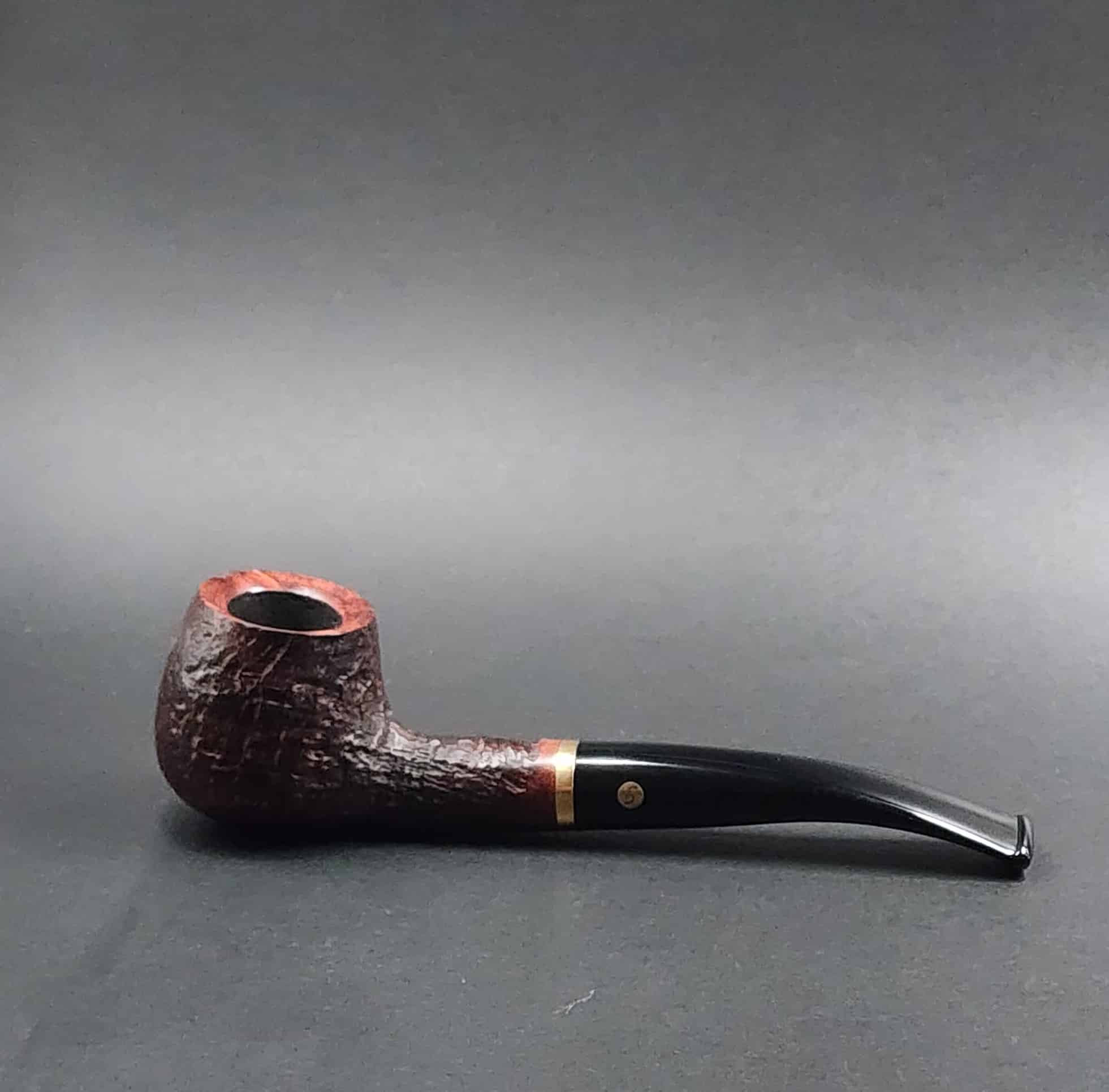 Sandblasted one-by-one these high quality Briar pipes have an acrylic stem, gold coloured band and are finished with a special staining process. Ecah pipe is unique with shade variations.
