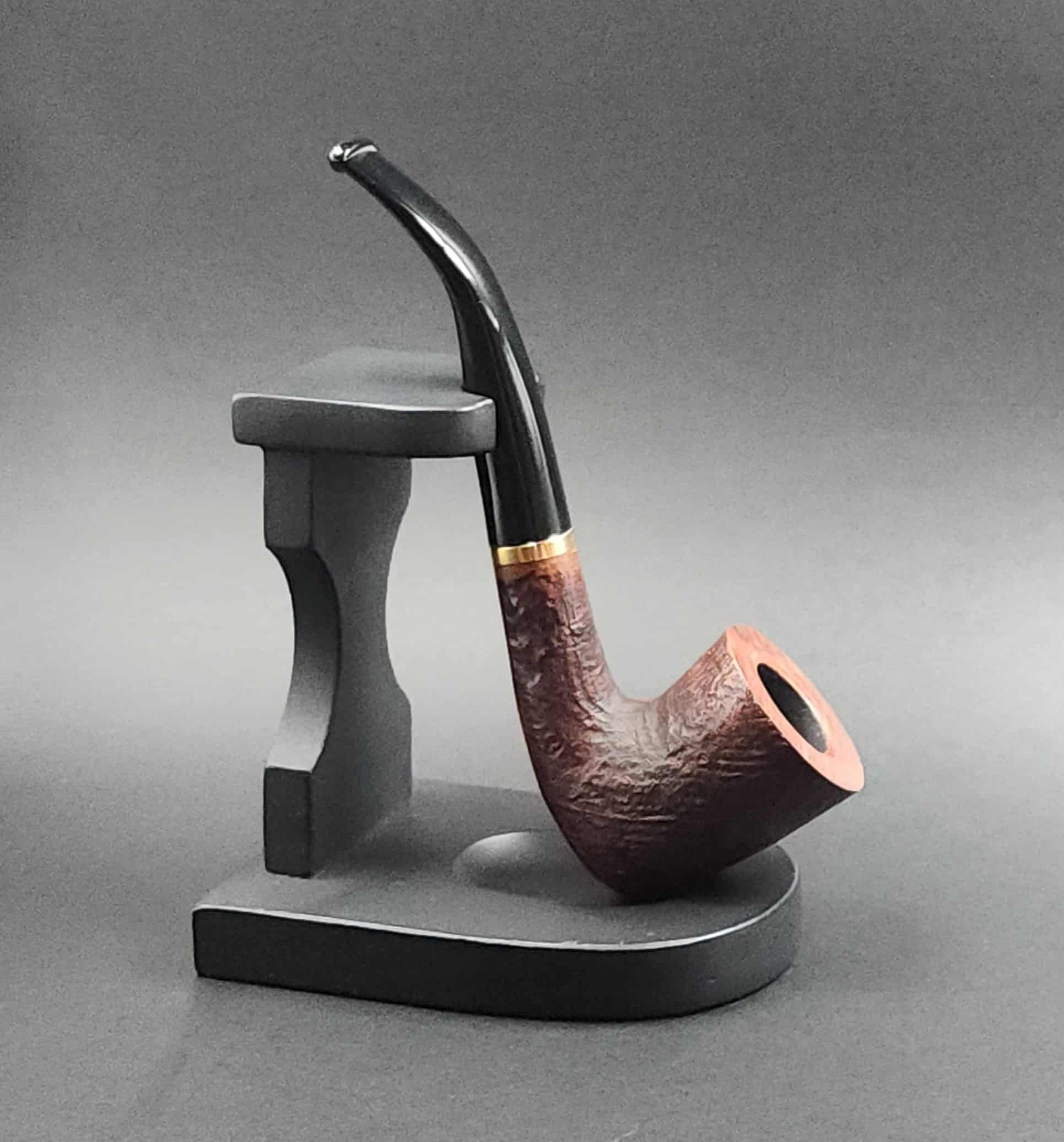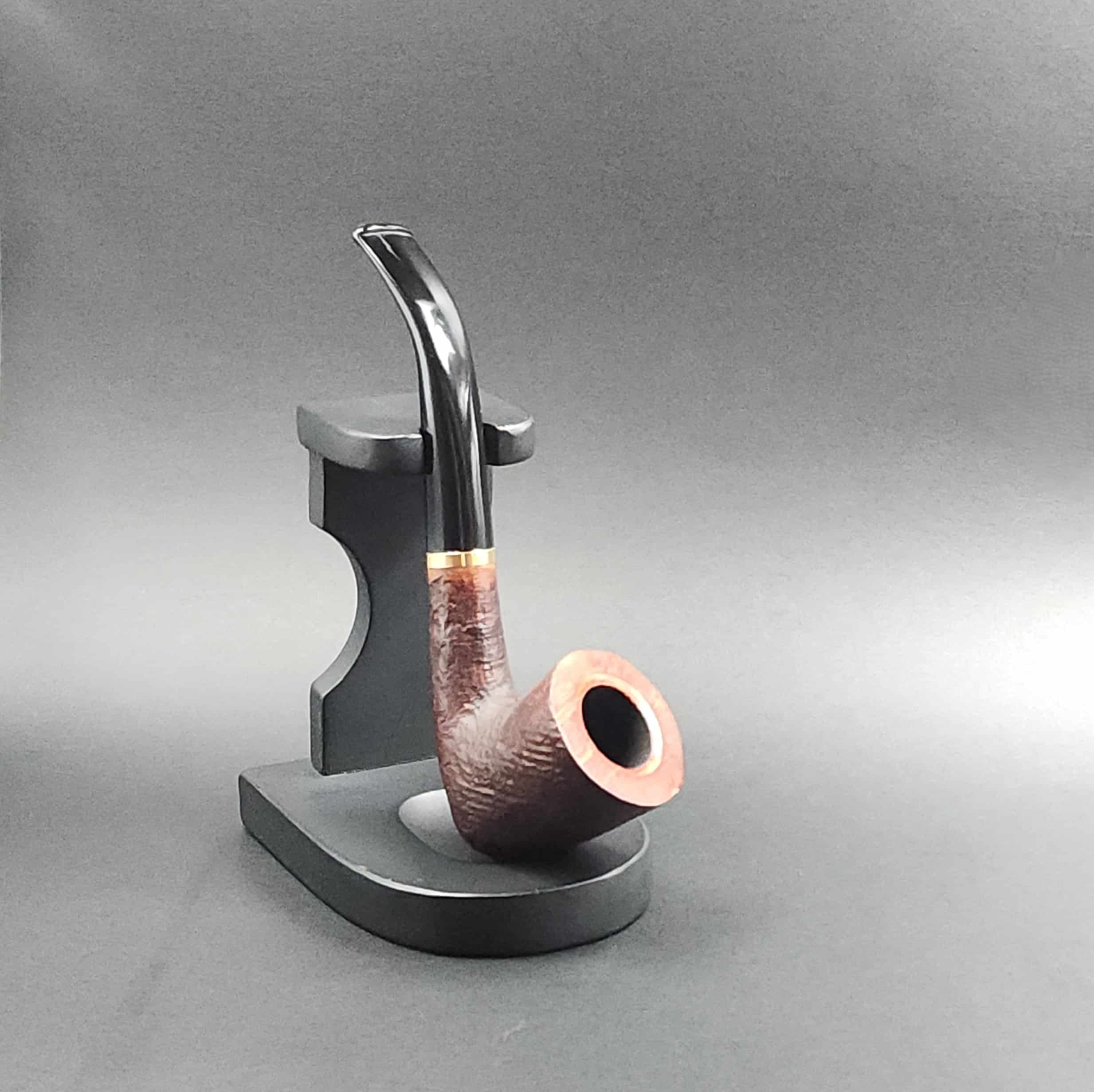Sandblasted one-by-one these high quality Briar pipes have an acrylic stem, gold coloured band and are finished with a special staining process. Each pipe is unique with shade variations.