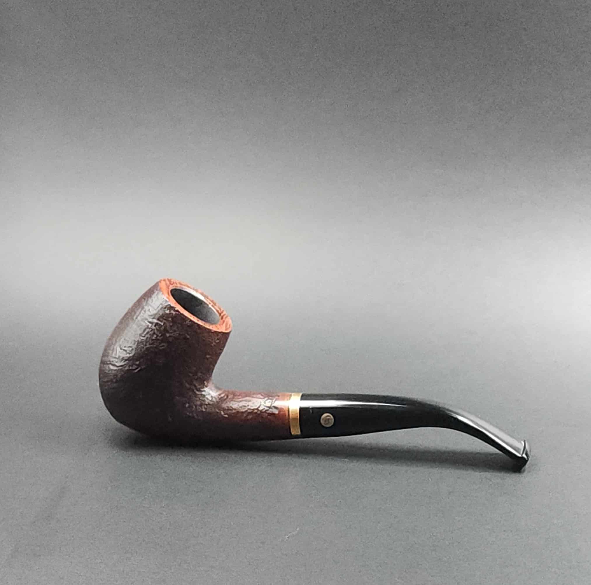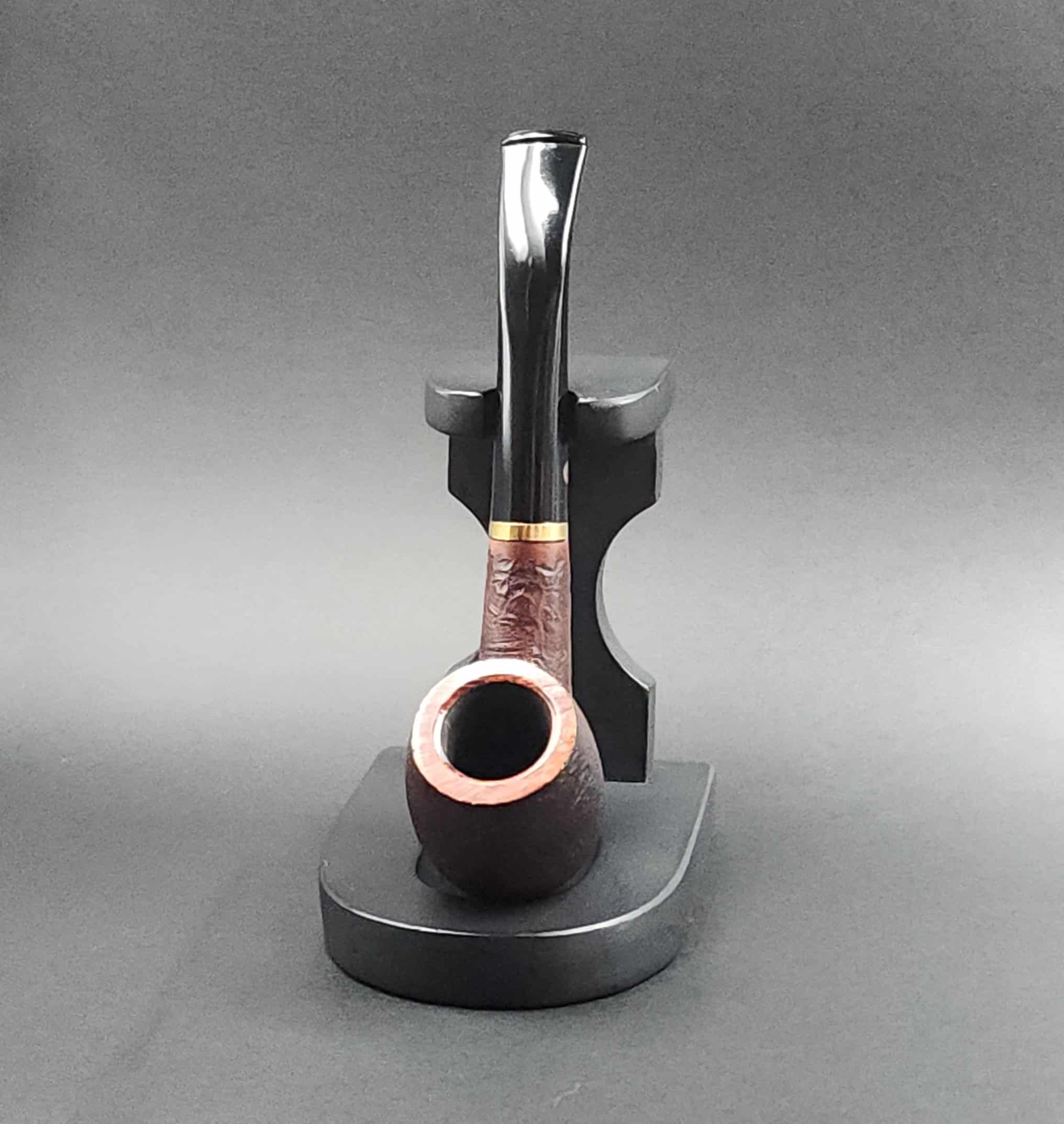 Sandblasted one-by-one these high quality Briar pipes have an acrylic stem, gold coloured band and are finished with a special staining process. Each pipe is unique with shade variations.