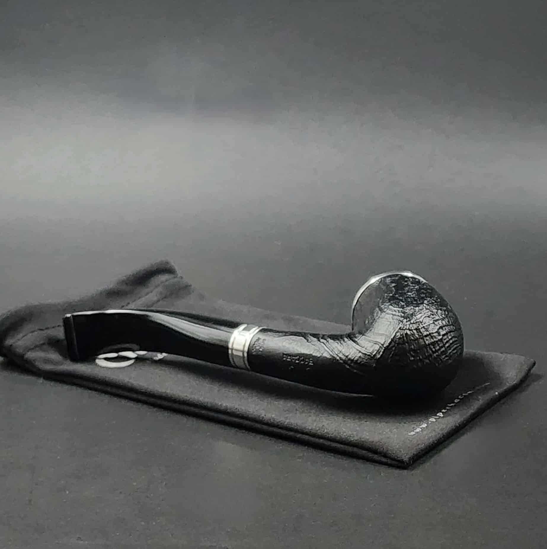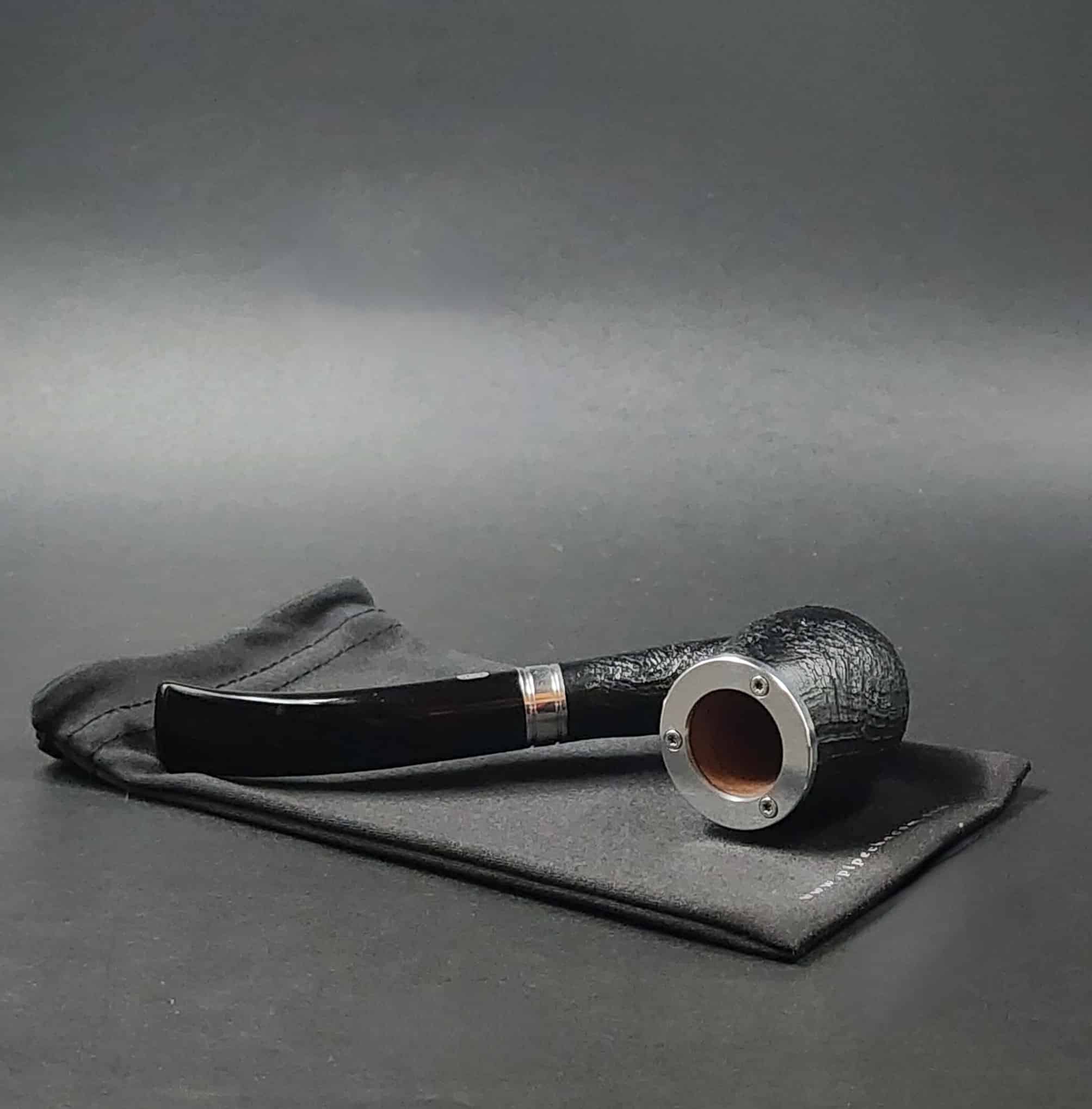 The Baccara pipe has an aluminum cap, aluminum band and black acrylic stem.