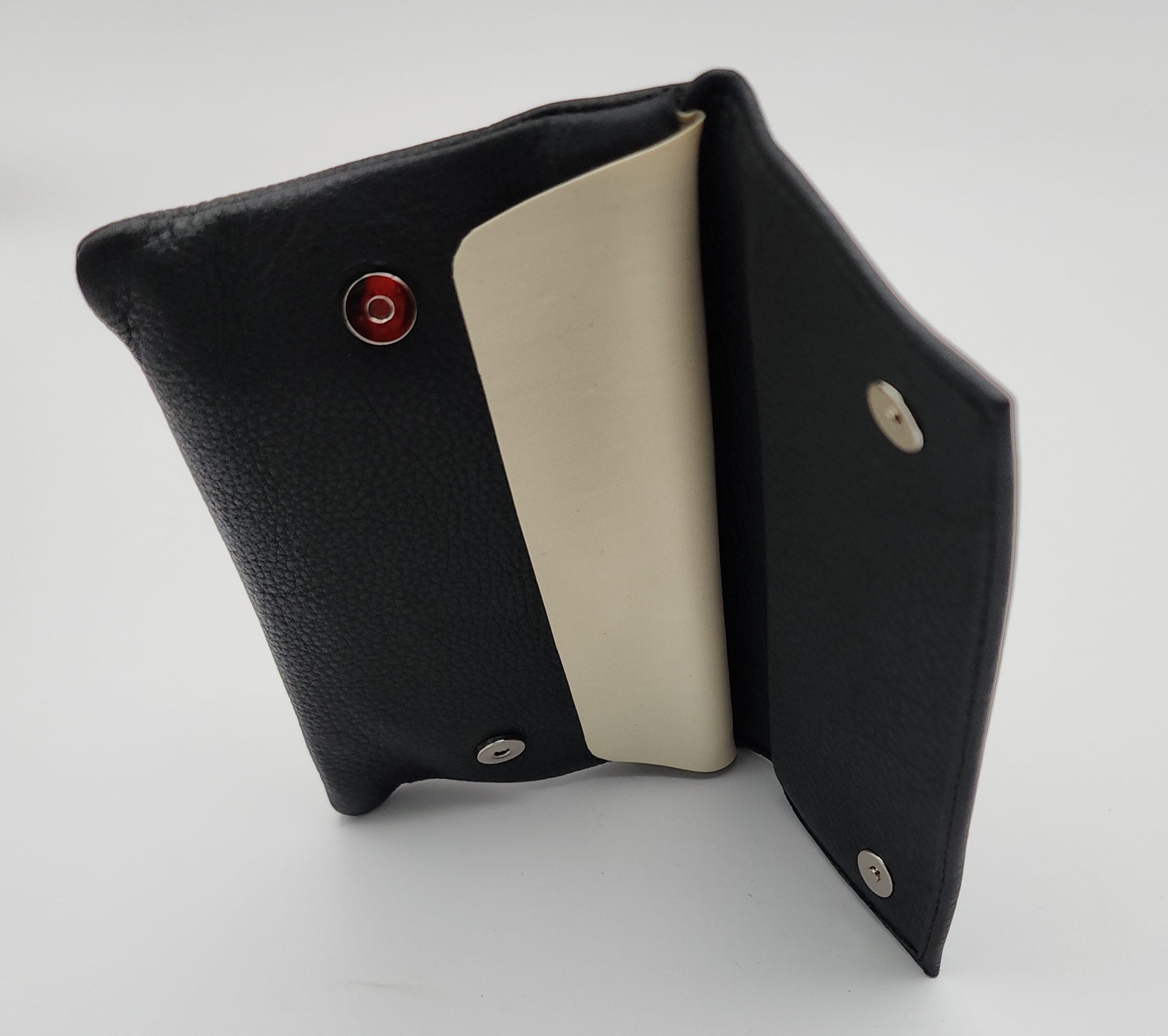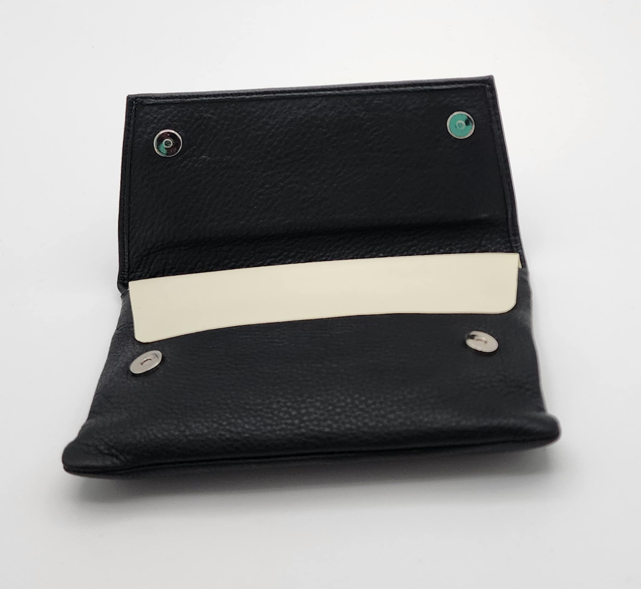 This pouch would be great to hold a pipo sized pipe and tobacco, or even a regular size pipe on its own. Or forgo the pipe in the bag and use this to hold your tobacco! With a dual button snaps, and extra flap at the top it really keeps your tobacco from blowing away. At the opening there is a rod that helps to ensure that the pouch stays closed. It has a stylish tapered design with the base of the pouch measuring 5 1/2 inches long and the height of the pouch being 3 1/2 inches.