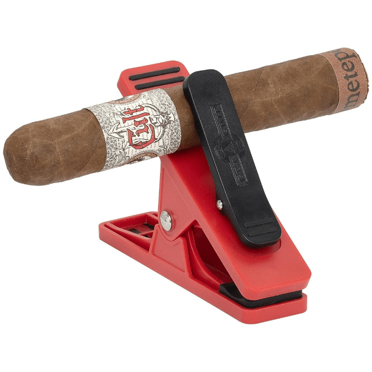 “Get A Grip Cigar Clip” accommodates over 66+ ring gauge. Has gentle clip tension keeping your cigar held perfectly. The composite material will withstand everyday use, in every climate. Use it on your golf cart, golf bag, boat, RV, bike, 4-wheeler, etc.