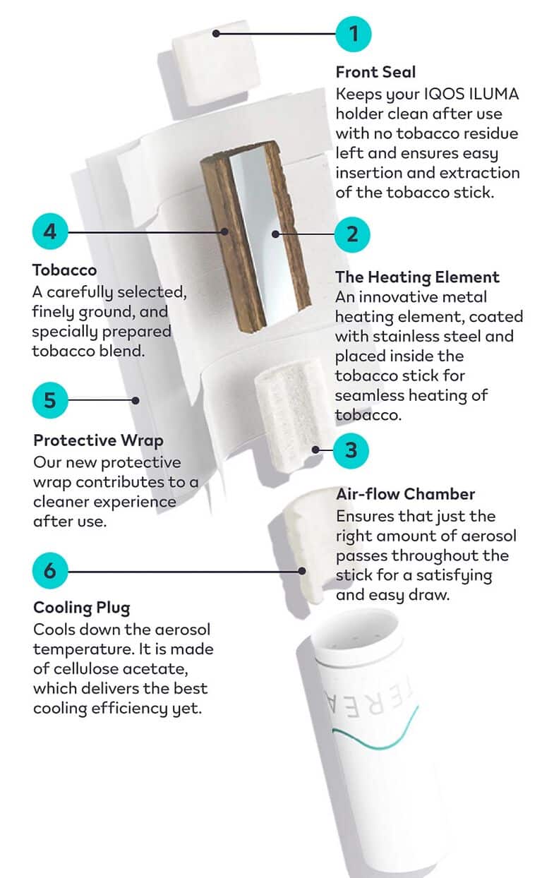 Because TEREA tobacco sticks feature a fully sealed tobacco part they are not compatible with IQOS 3 DUO or any earlier blade generation devices.