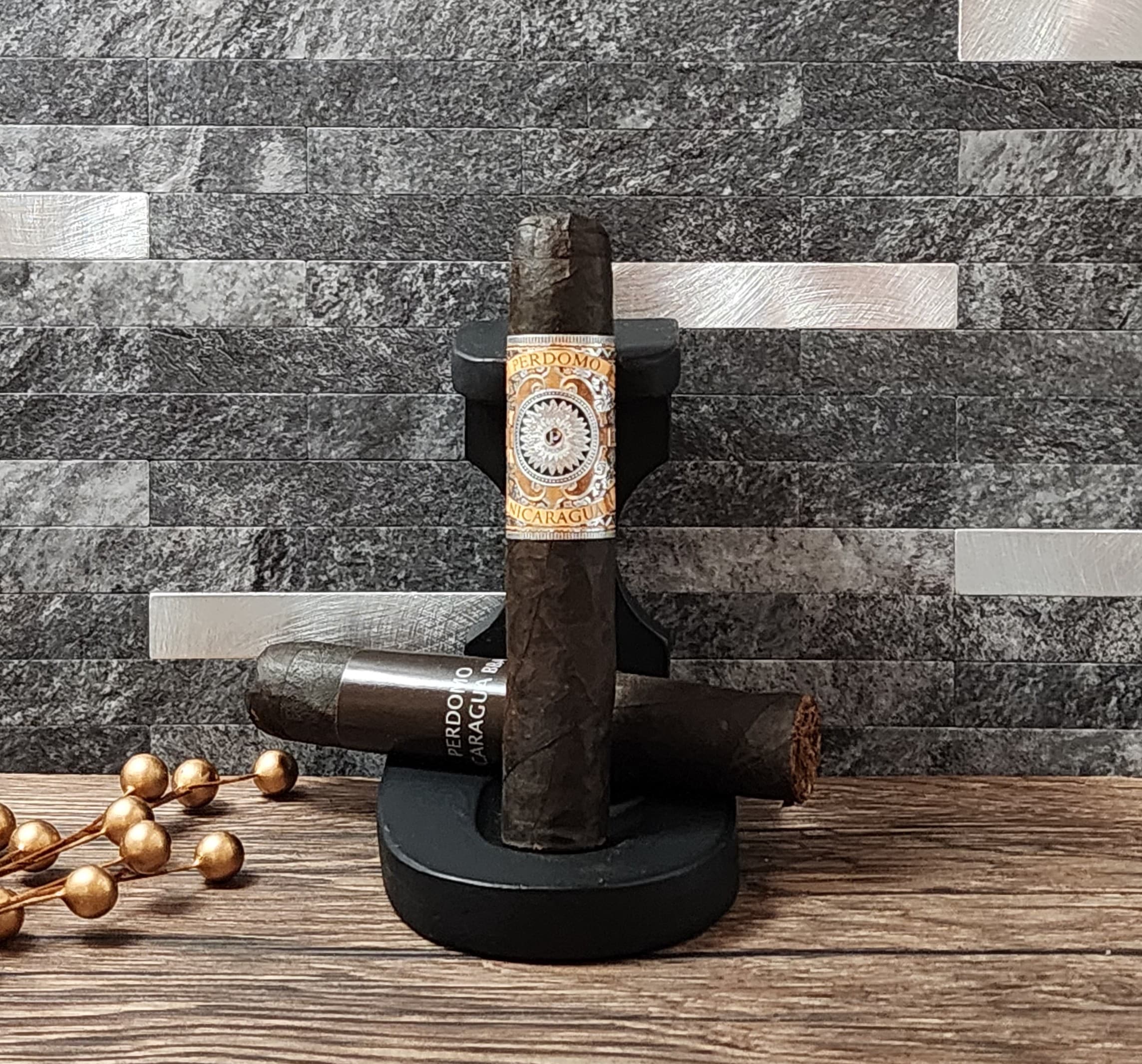 The PERDOMO Habano Bourbon Barrel-Aged Maduro features an oily, 6-year old bourbon barrel-aged Cuban-seed Nicaraguan Maduro wrapper that blends perfectly with the 6-year aged Cuban-seed Nicaraguan filler tobaccos, offering a sweet complexity with slight hints of cocoa and dark roasted coffee on the finish.