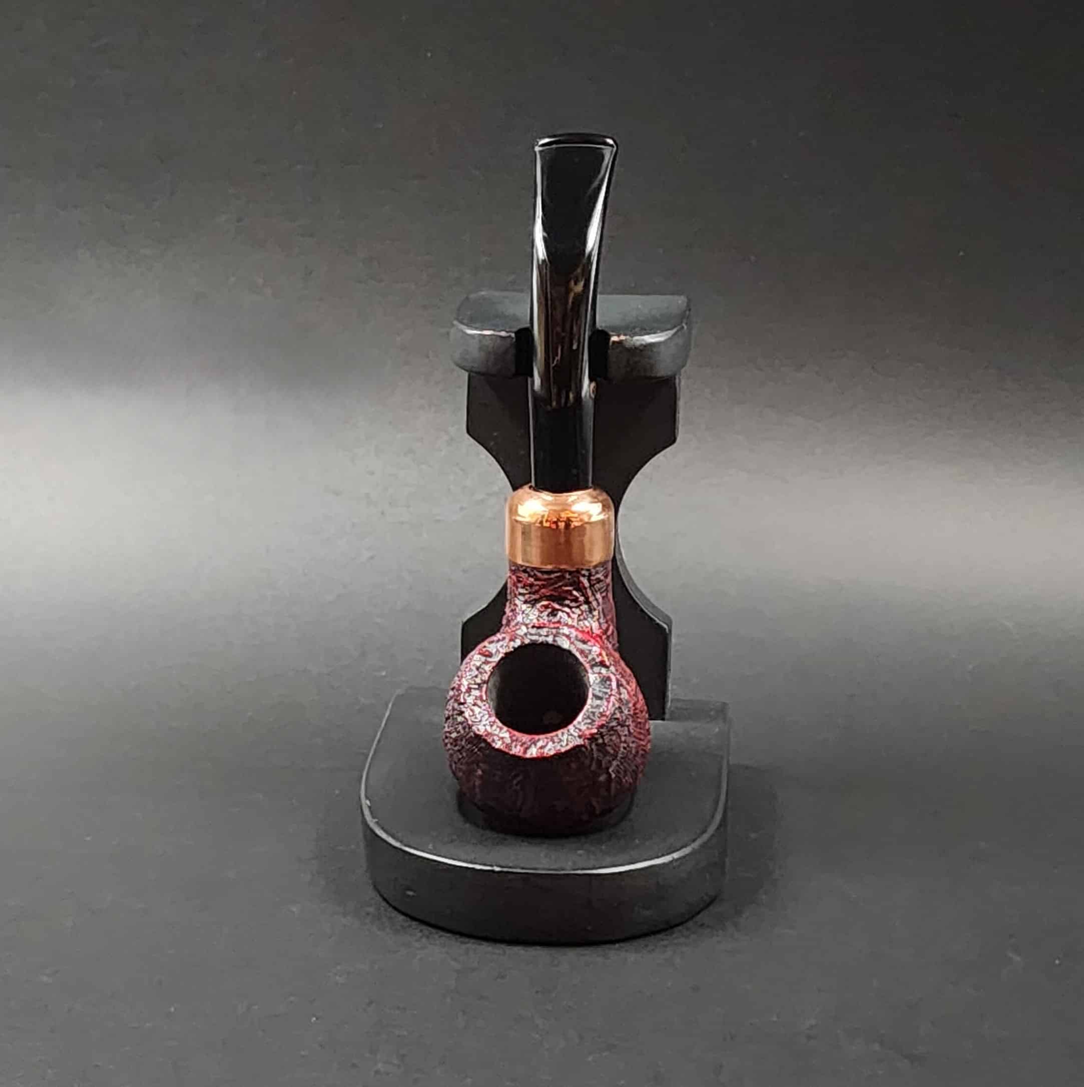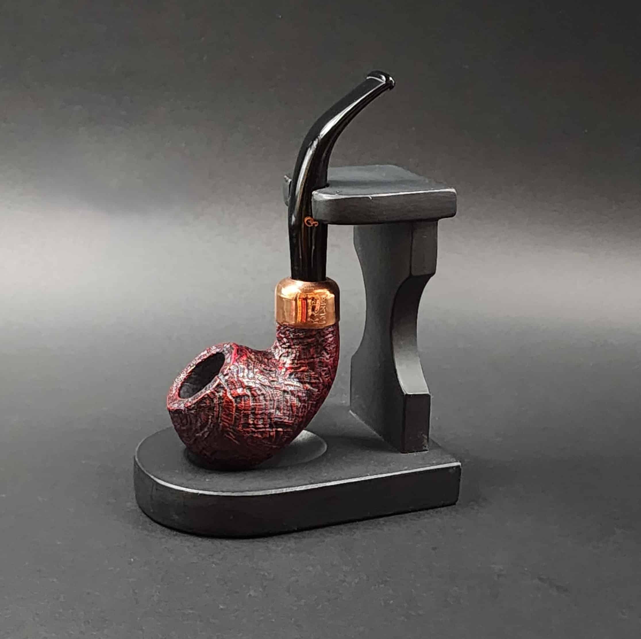 Peterson’s “03” bent Apple is a classic design that’s well suited for the Irish marque’s Christmas 2018 series. It presents a deep, ruby sandblast contrasted against a bright copper mount.
