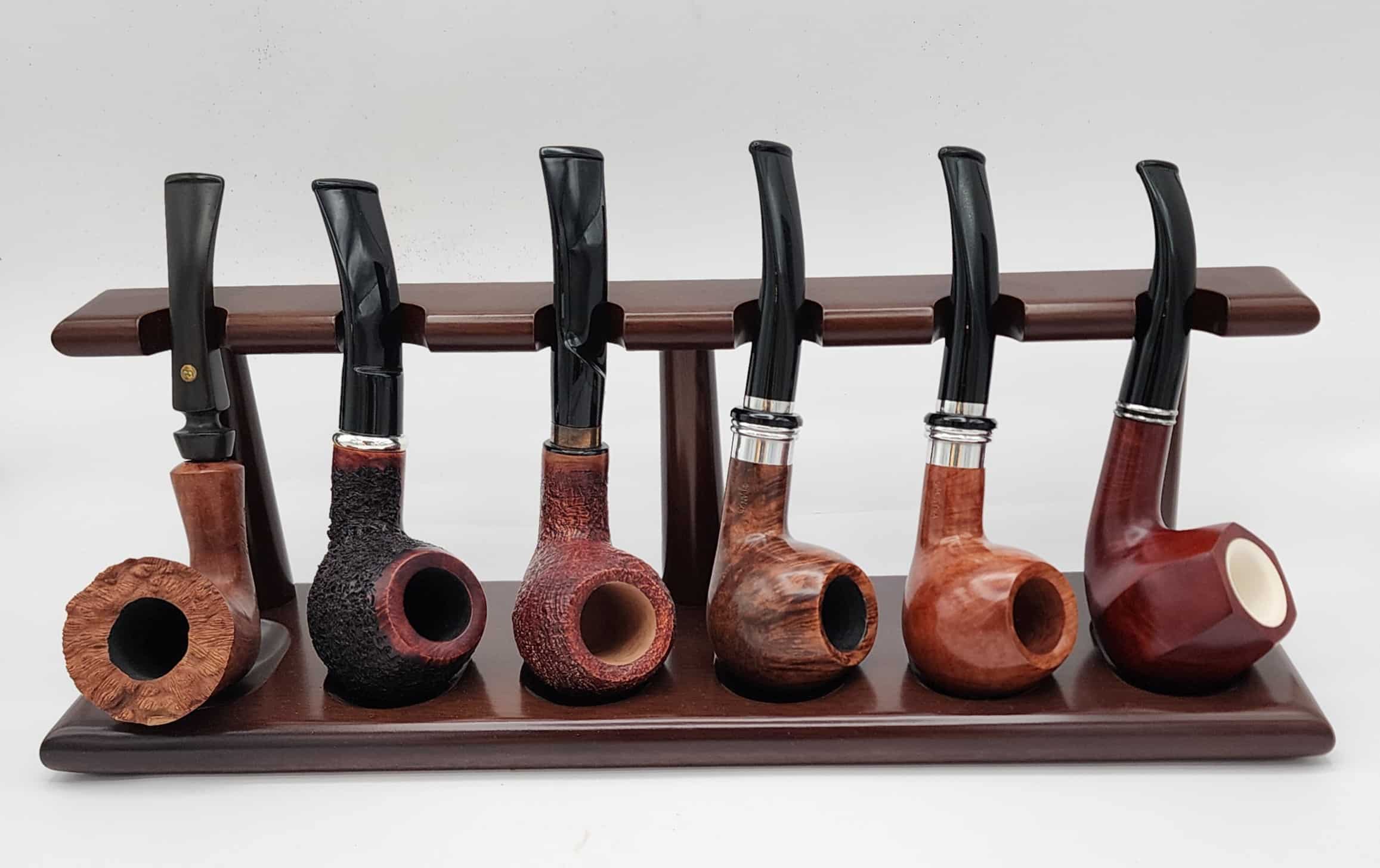 PIPE STAND SOLID WOOD BROWN FINISH – SIX COUNT PIPE HOLDER