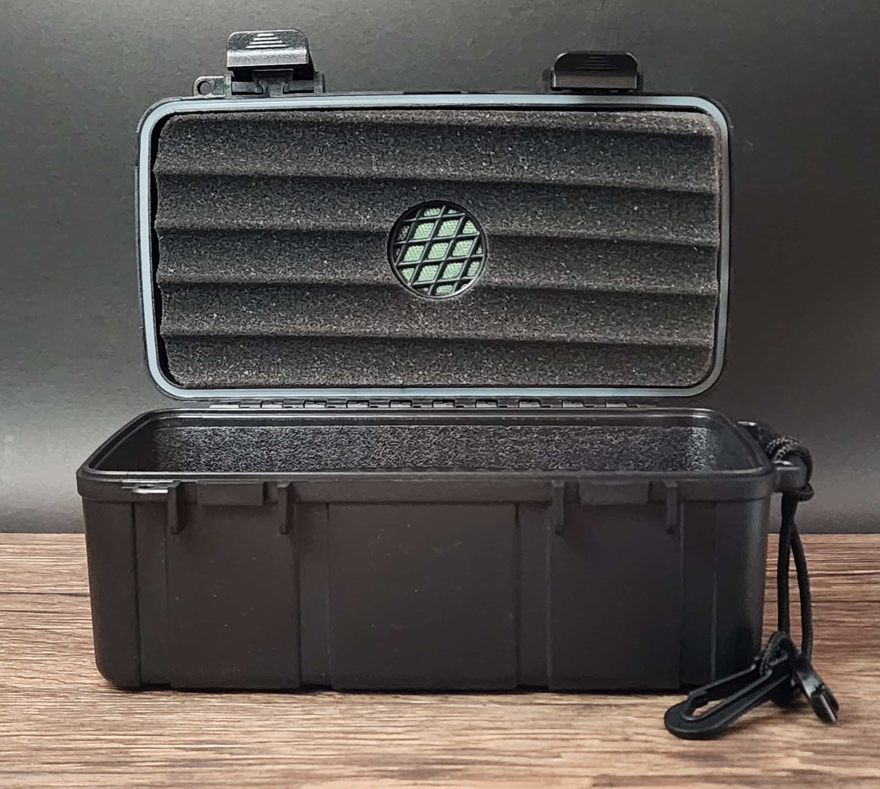 If you’re on the move than you will want to have a travel humidor in your arsenal. This Sikarlan 10 count humidor allows you to securely travel with your favourite cigars.