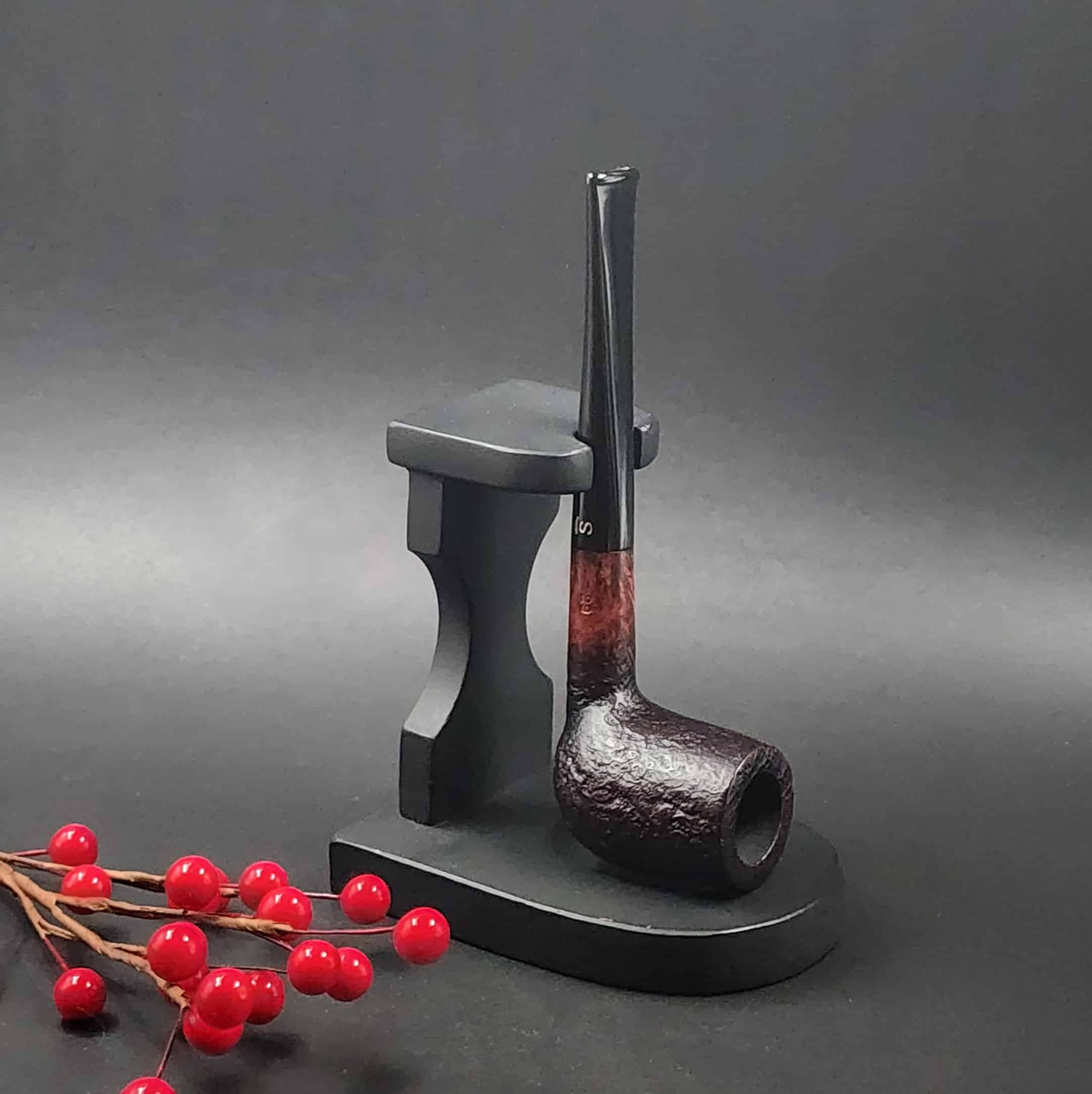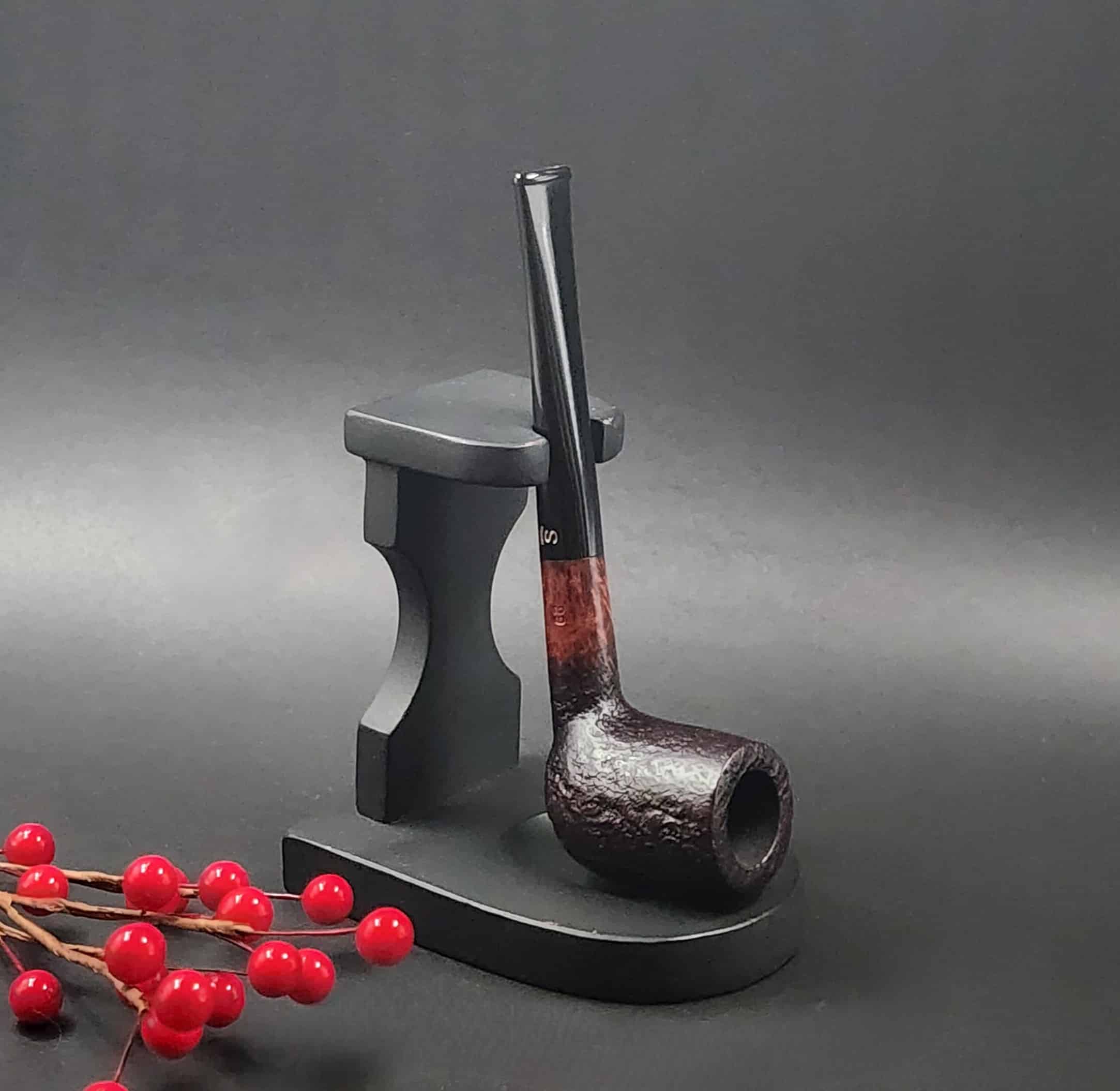 The Vario series from Stanwell are partially sandblasted and partially smooth. The sandblasted sections are blac and the smooth are a chestnut tone. A black acrylic stem completes the look.