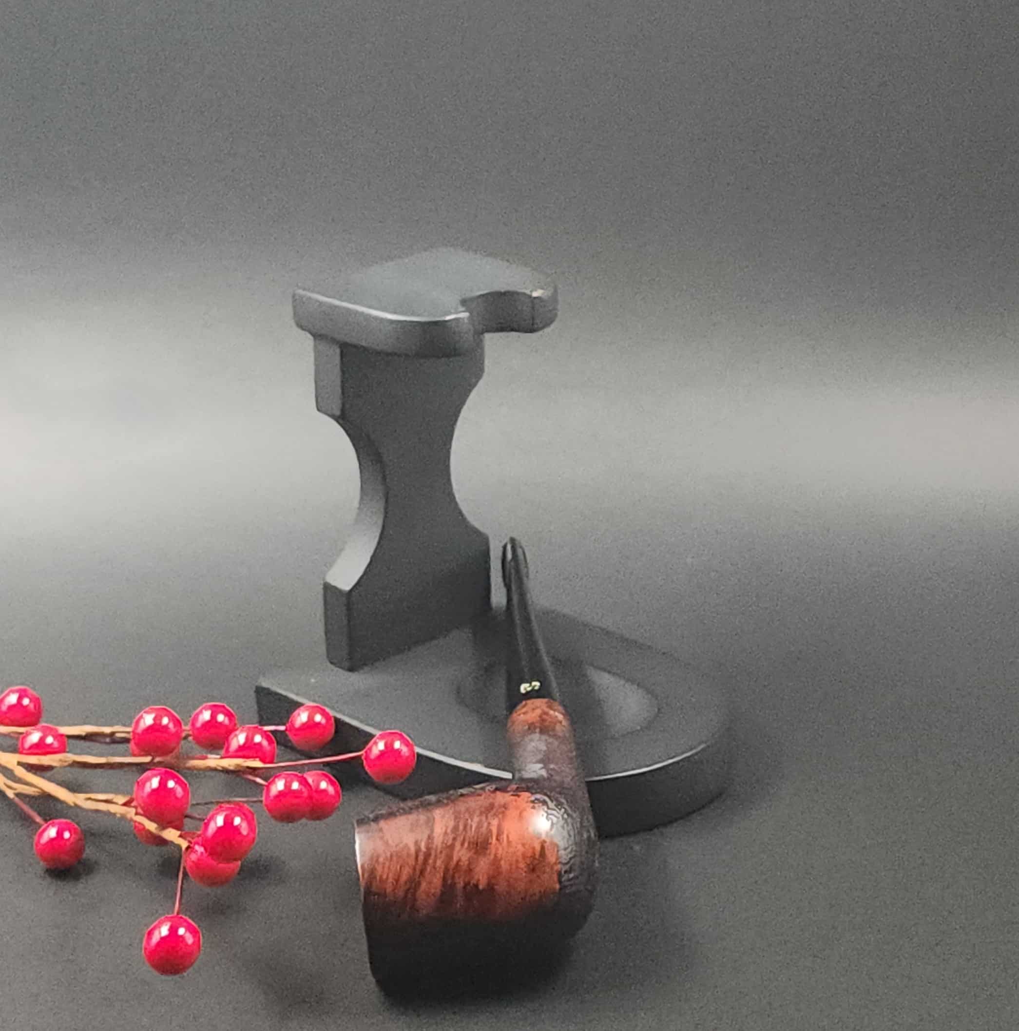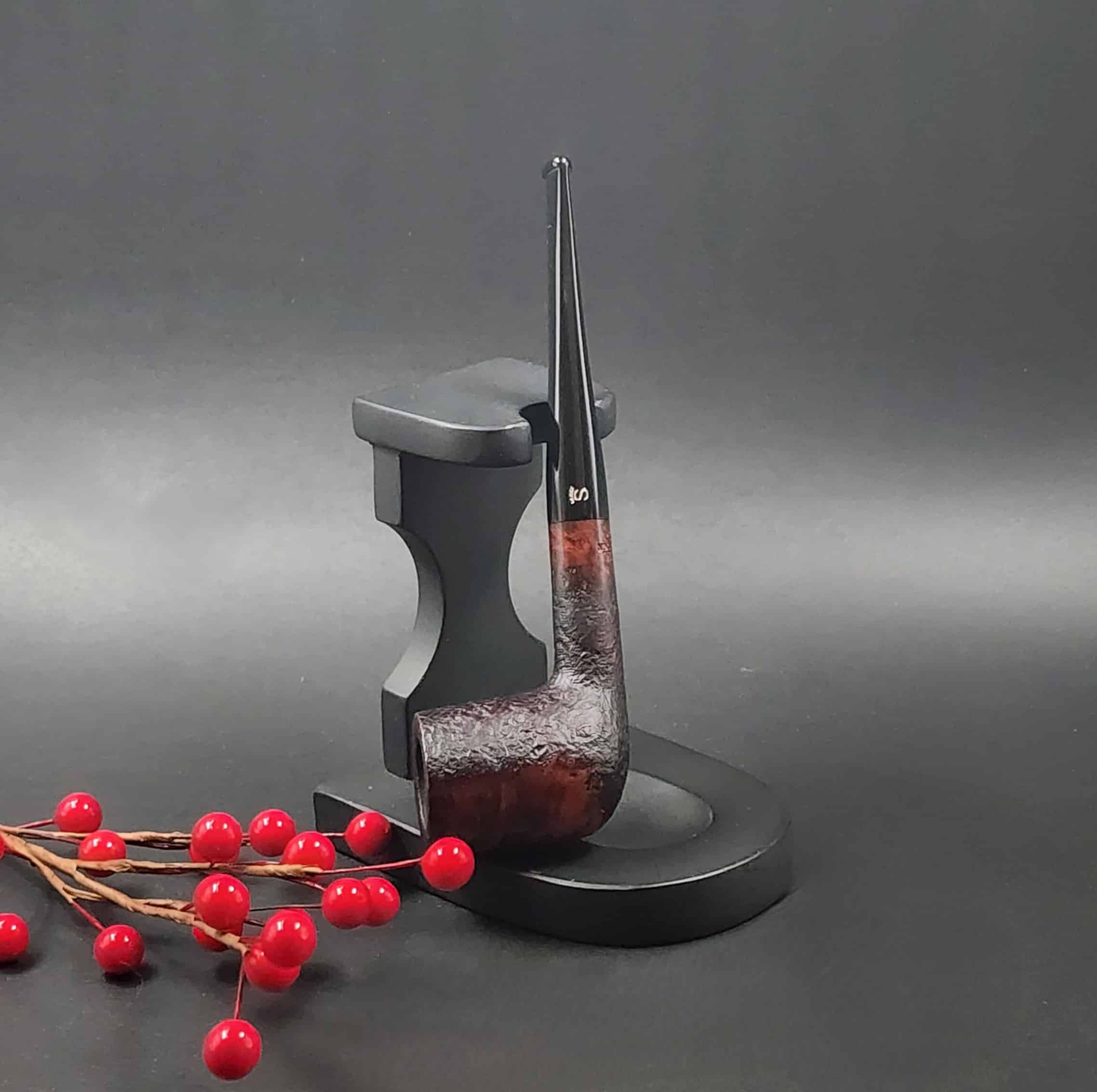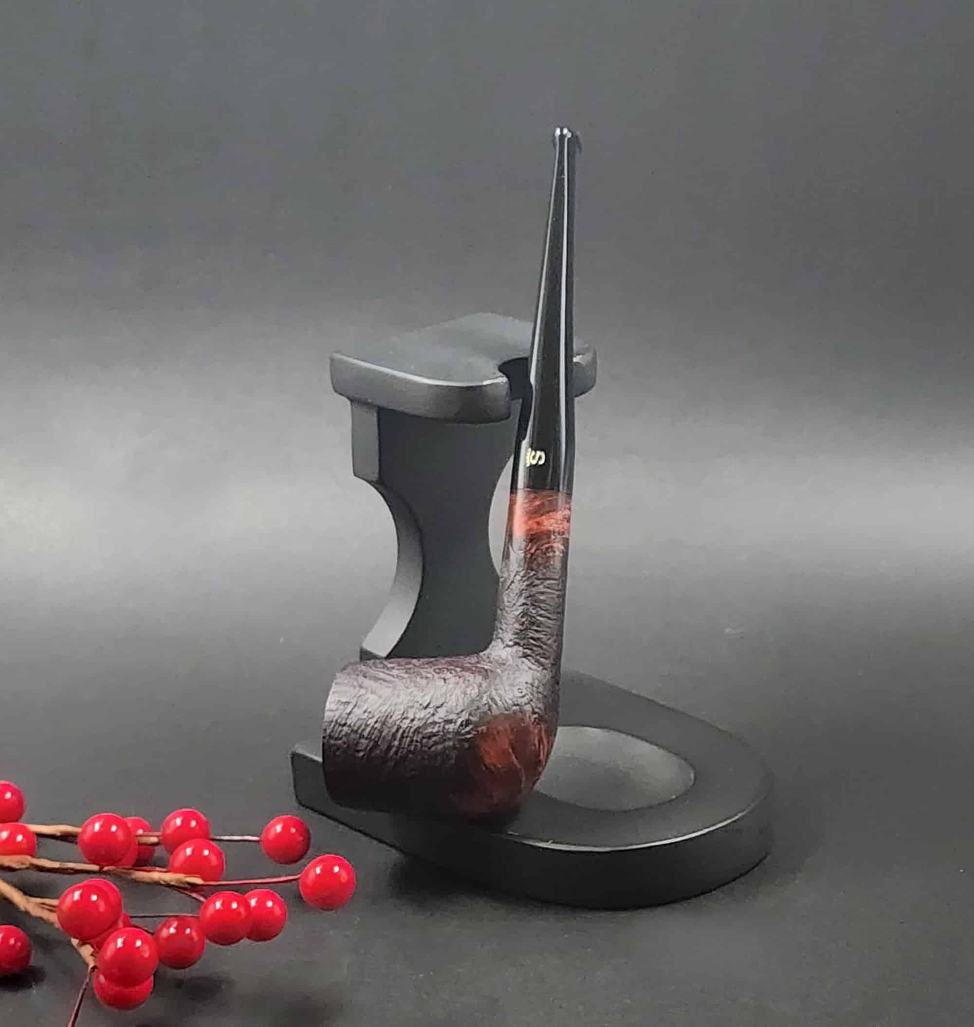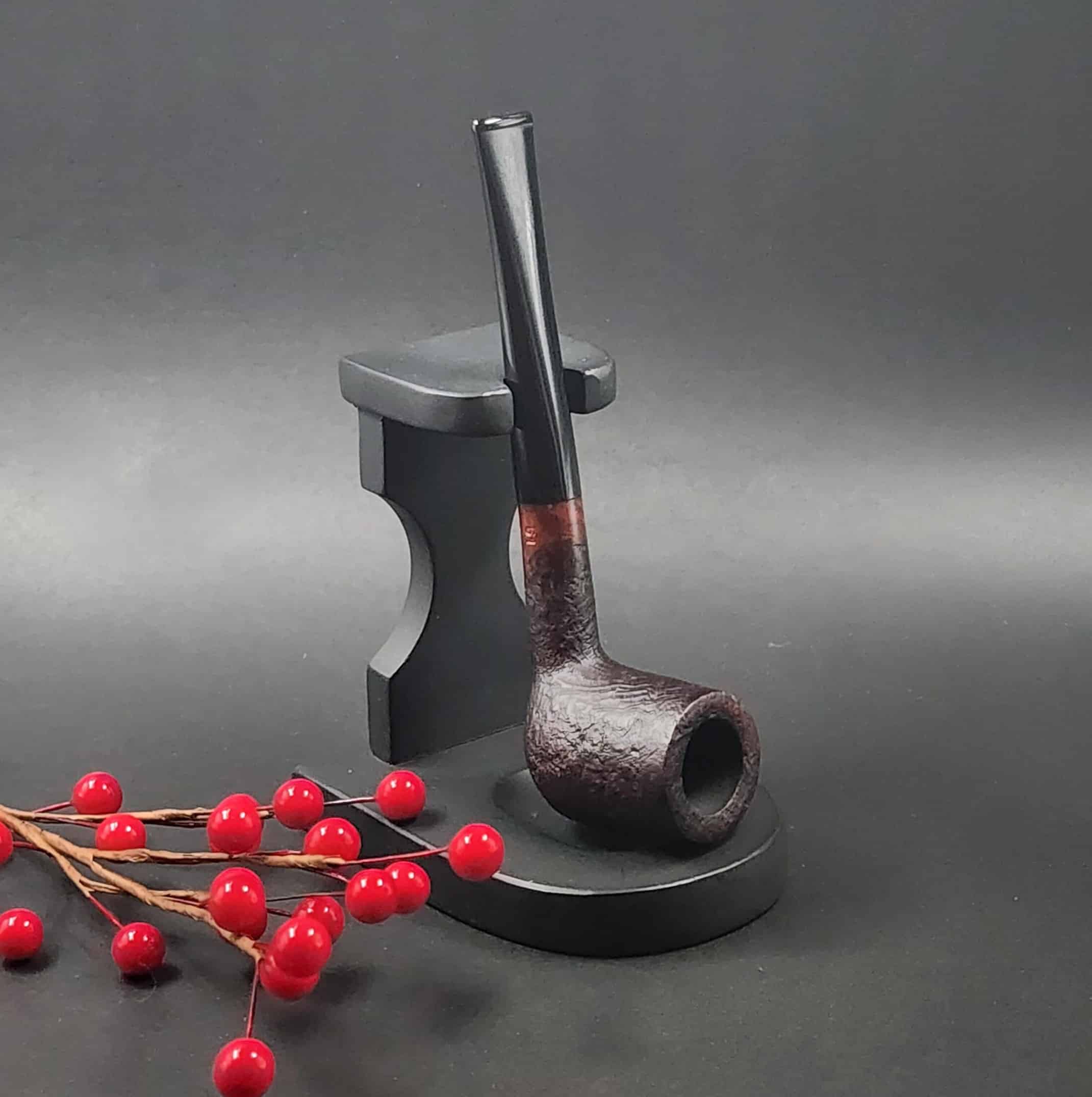 The Vario series from Stanwell are partially sandblasted and partially smooth. The sandblasted sections are blac and the smooth are a chestnut tone. A black acrylic stem completes the look.