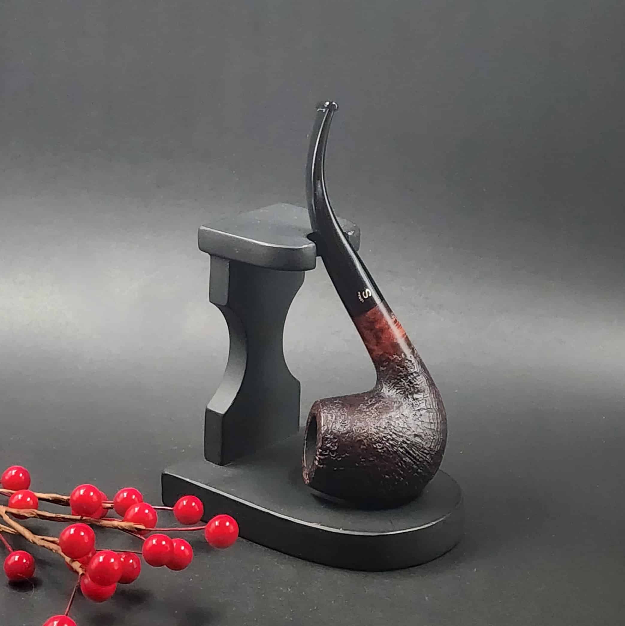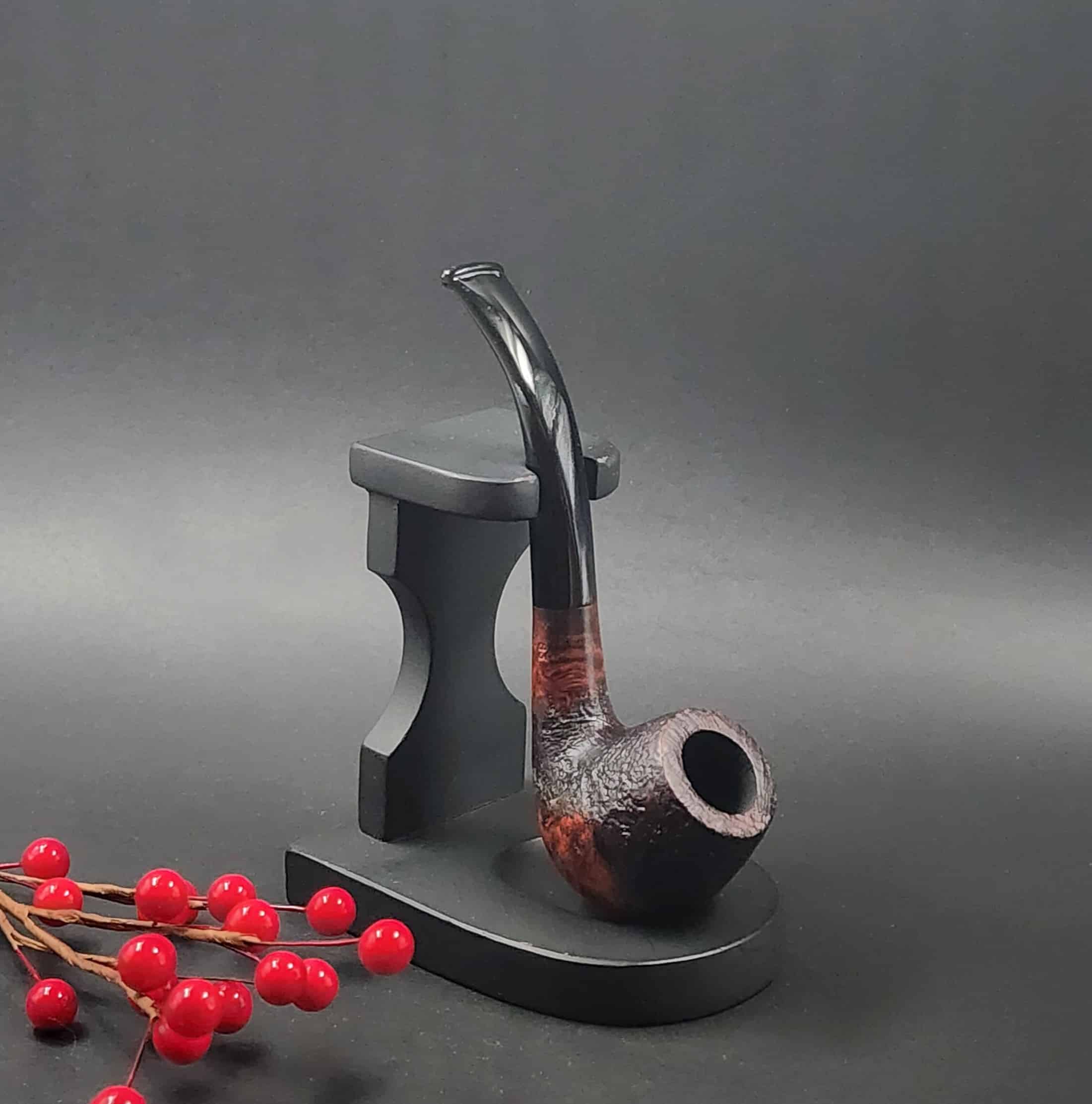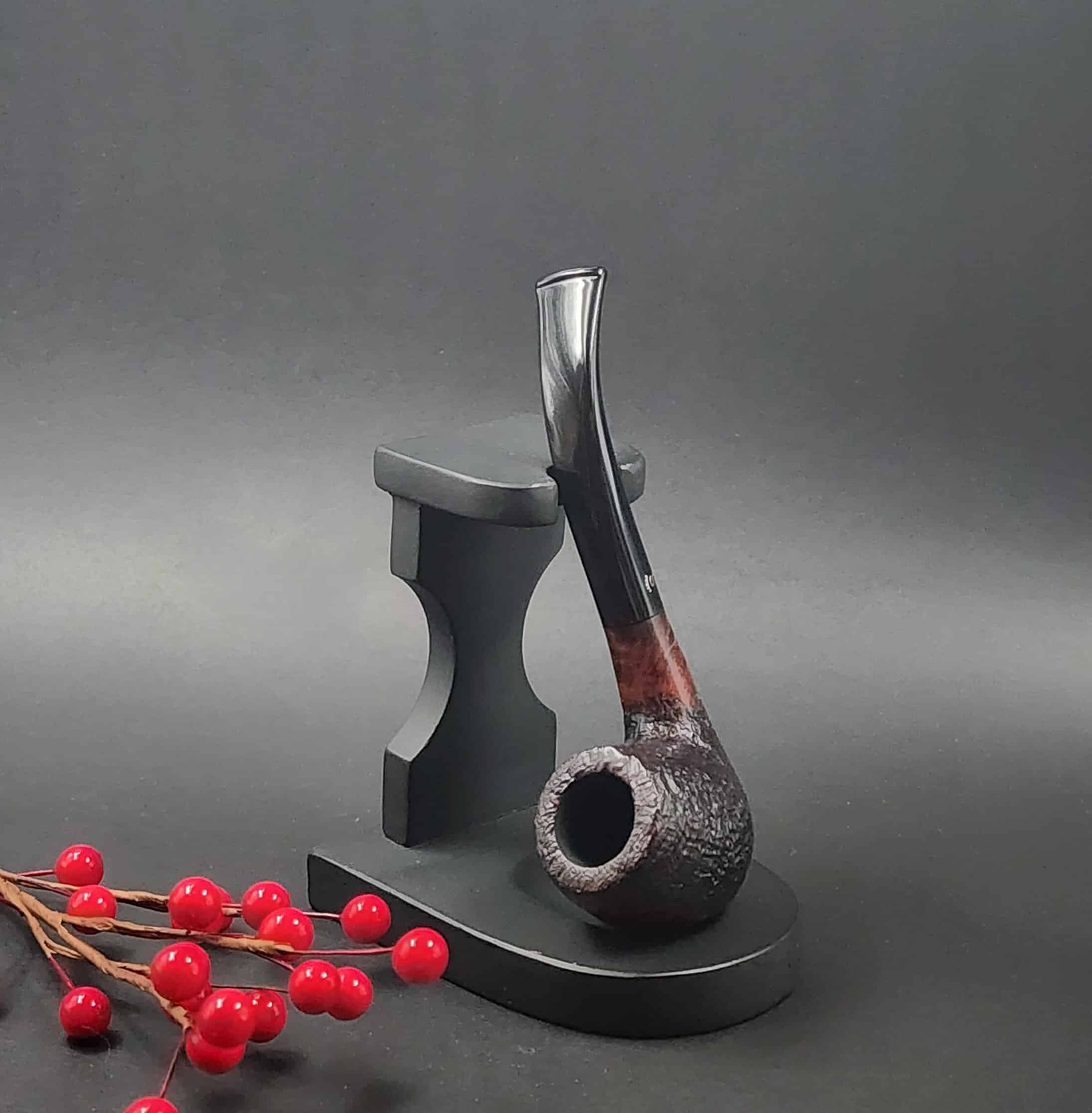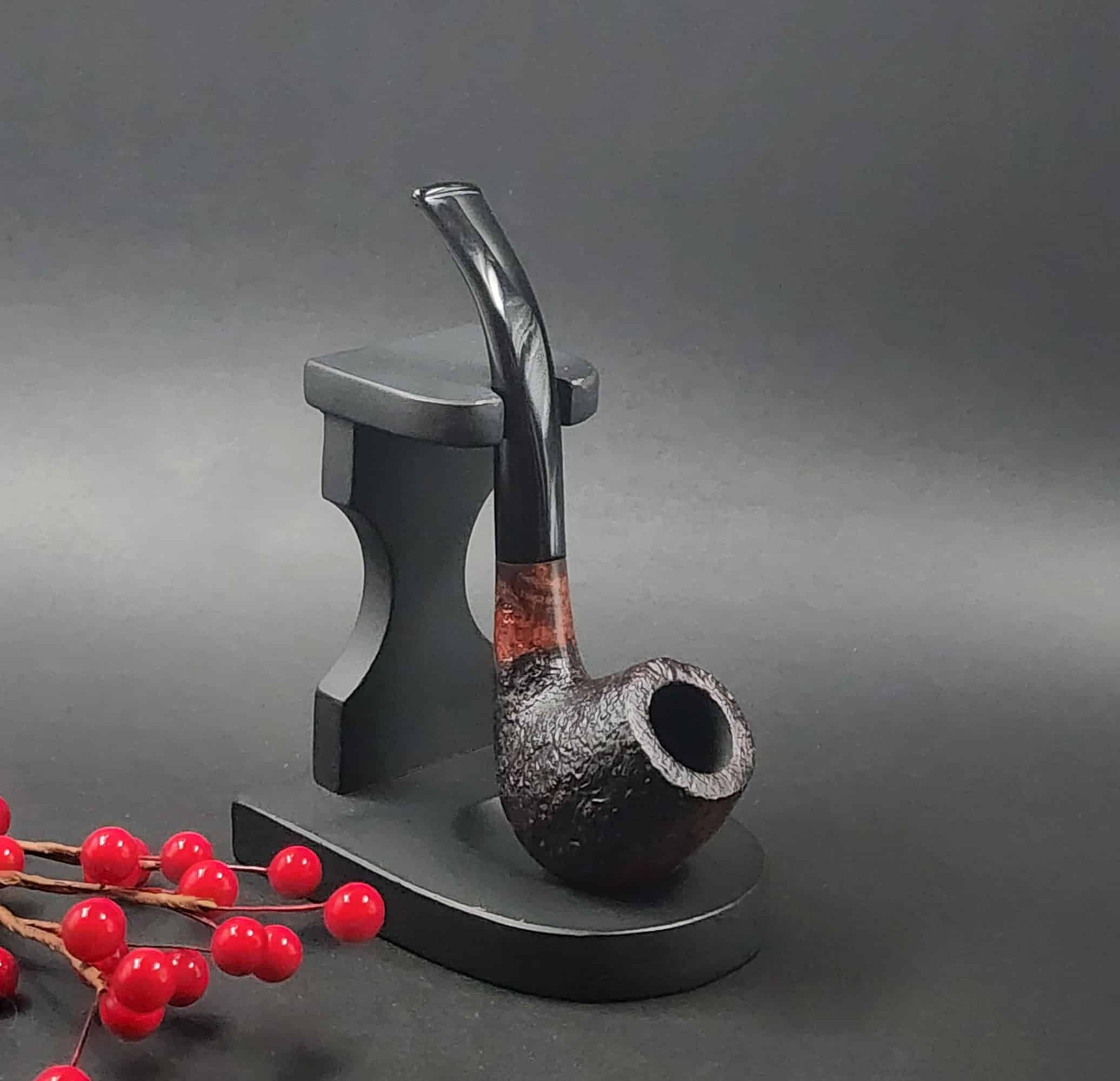 The Vario series from Stanwell are partially sandblasted and partially smooth. The sandblasted sections are blac and the smooth are a chestnut tone. A black acrylic stem completes the look.