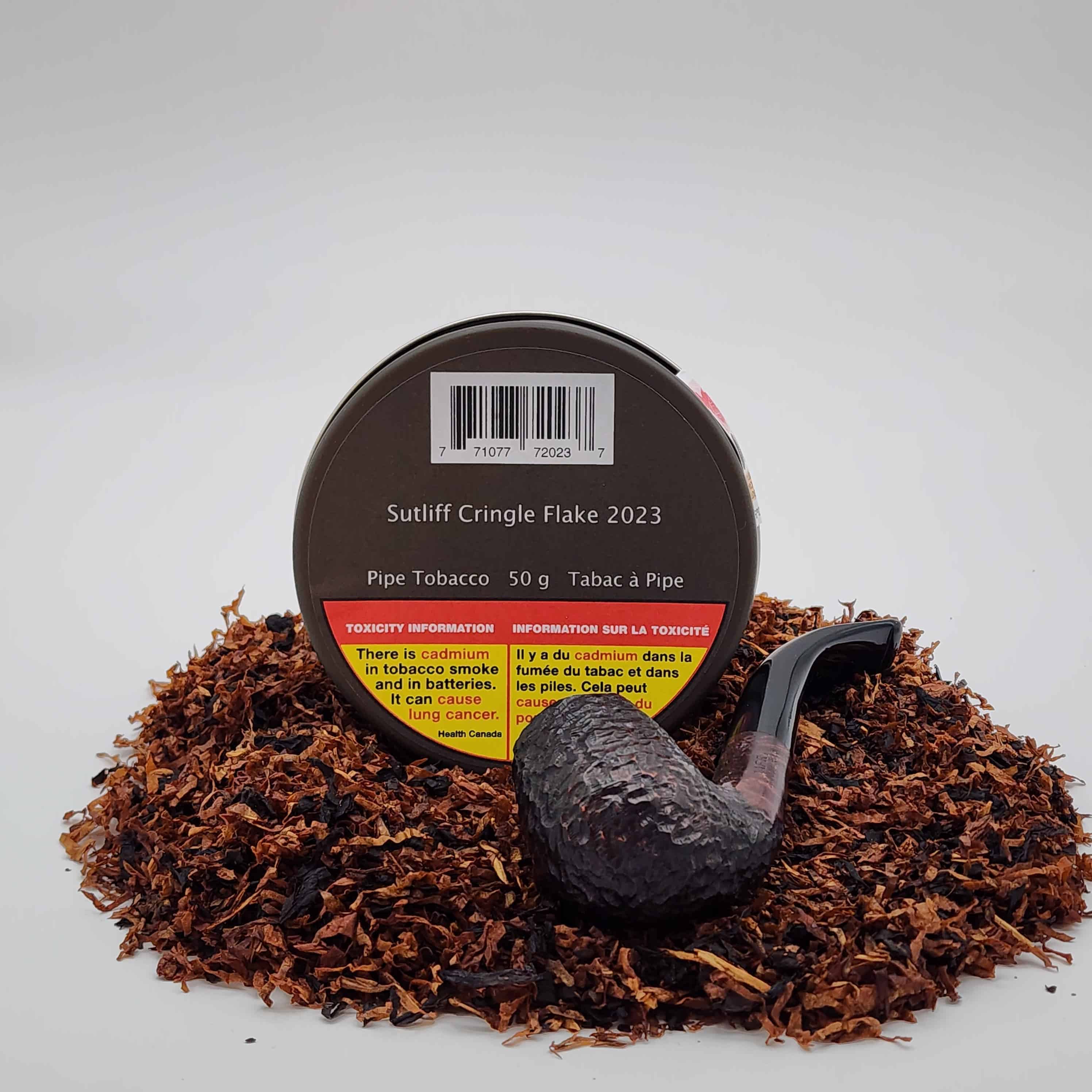 This blend is Christmas in a pipe tobacco! The fifth installment of Sutliff’s highly anticipated, seasonal pipe tobacco, Cringle Flake 2023 is a blend of aged, decade-old Red Virginias, 2003 vintage Perique, and stoved Katerini. This incredible holiday mixture presents an exceptional flavor right out of the tin, with a deep richness sure to improve even further with additional age.