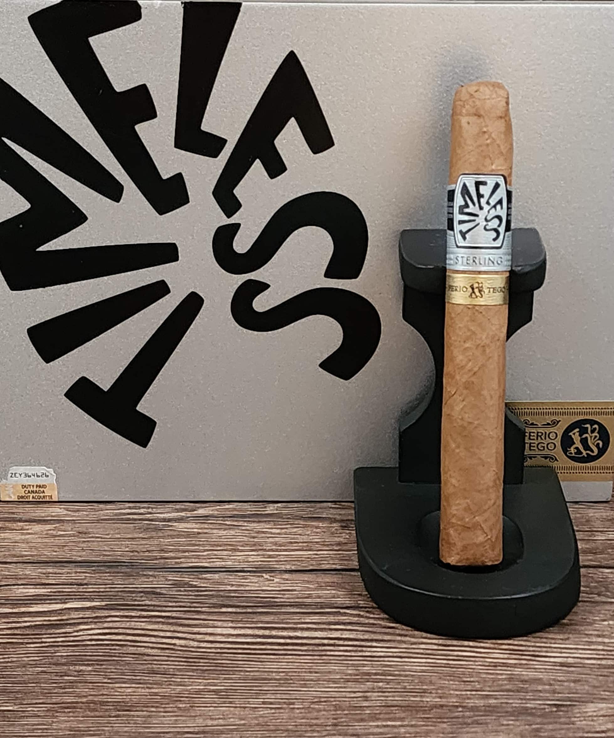 This is the Timeless Sterling. A carefully selected blend of Ecuadorian and well-aged Dominican tobaccos. Some of the blends long filler has been aged up to 10 years and is then rolled into a silky smooth creamy Connecticut shade leaf. This has a milder profile with an assortment of flavours. This cigar is for those with a refined palate and appreciation of the finer pleasures in life.